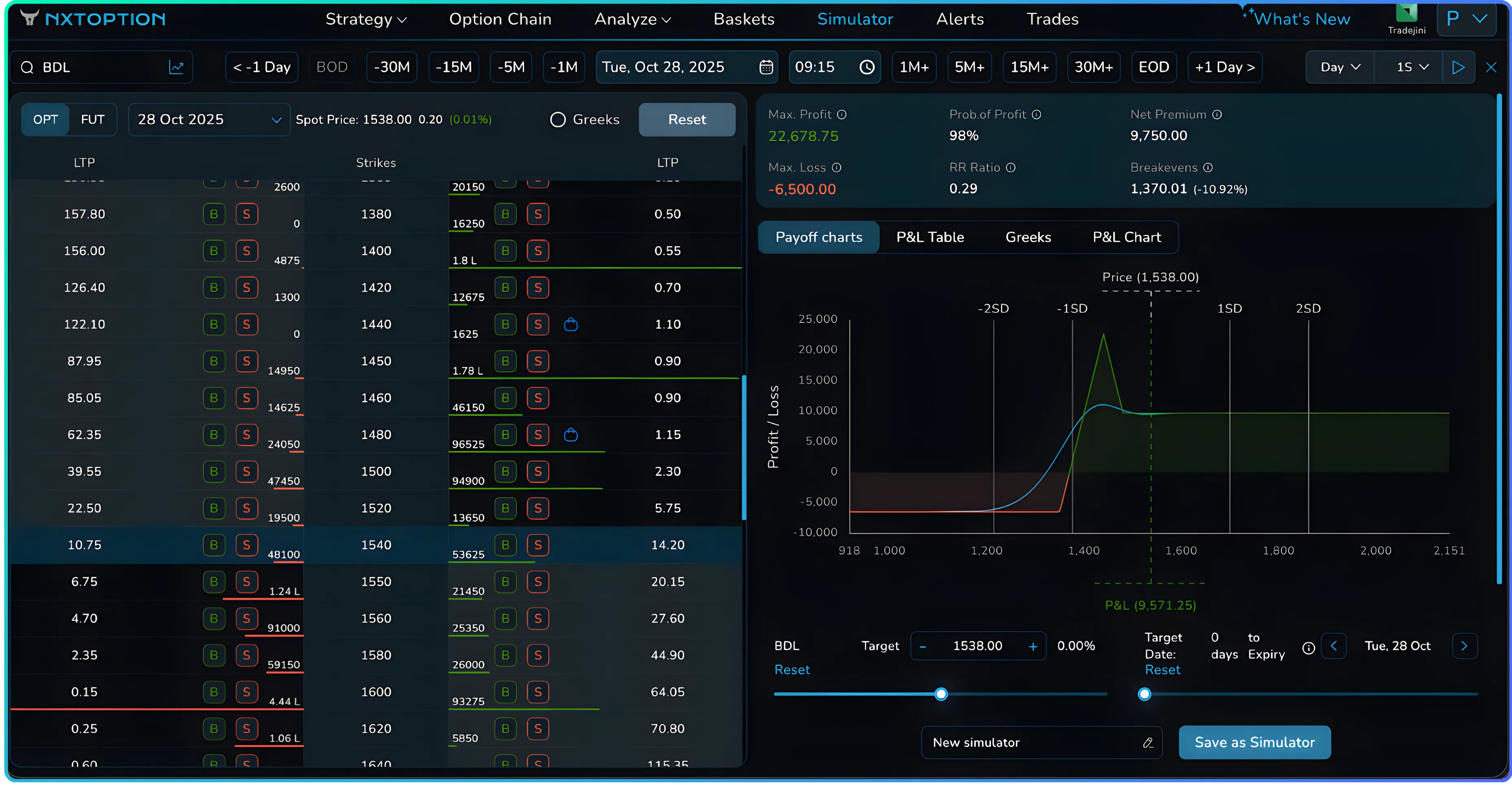 Use the Nxtoption Strategy Builder to simulate payoffs and monitor Greeks in real time before executing on CubePlus for live tracking and position management.