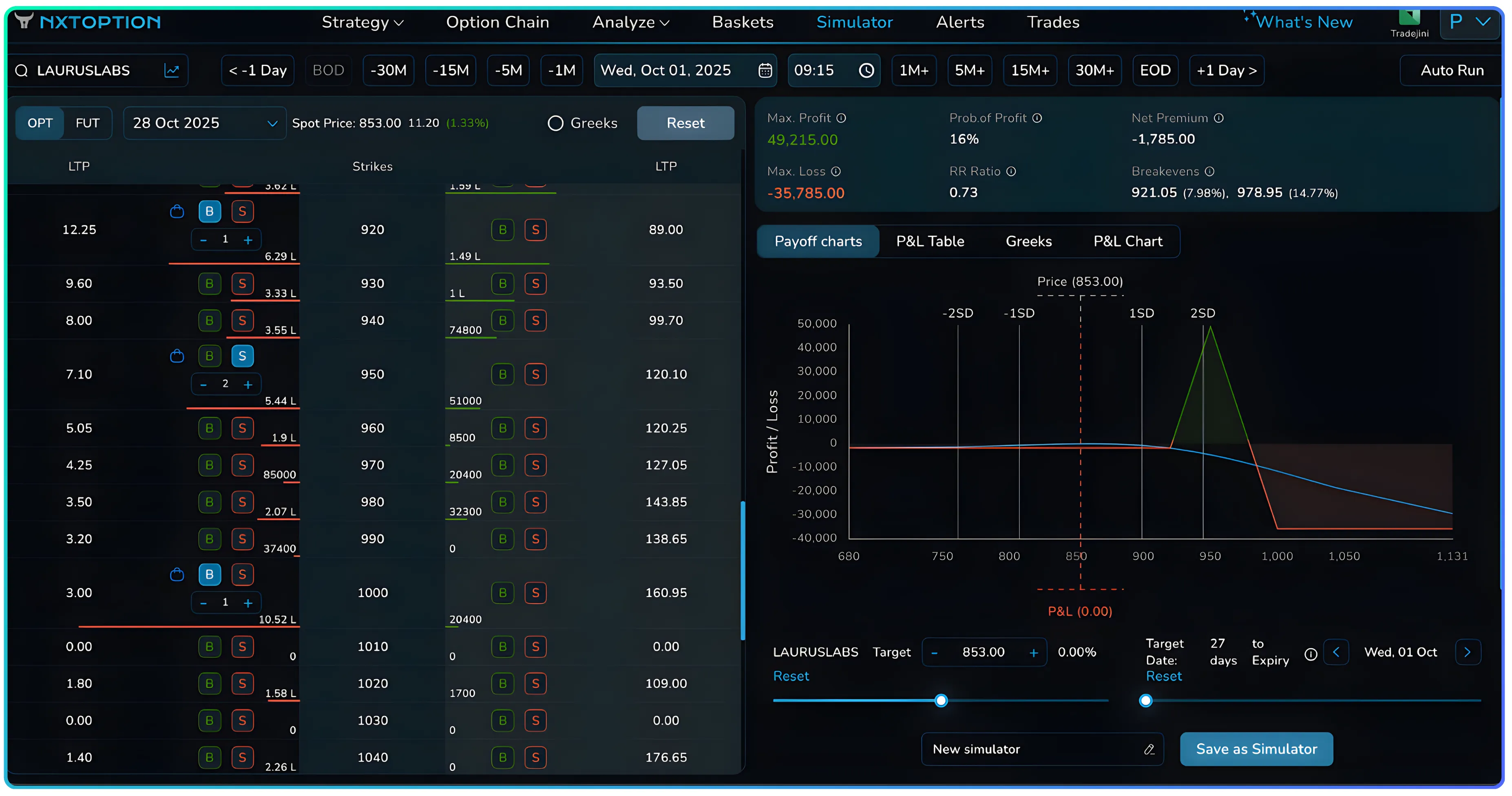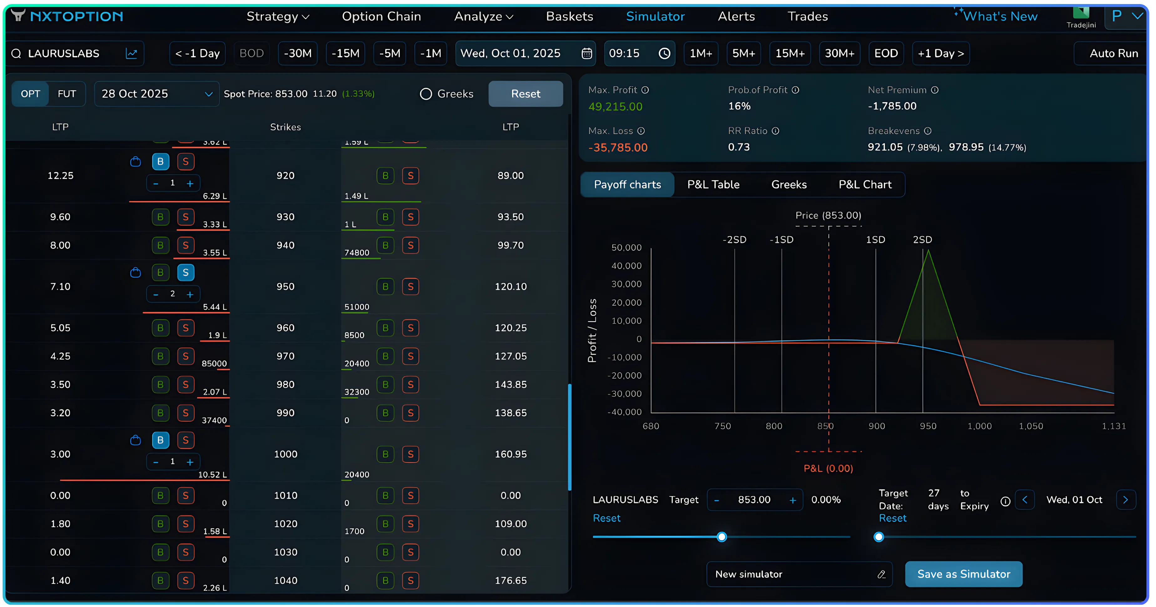 - Maximum Loss: ₹35,785 (if LAURUSLABS moves beyond ₹1,000)