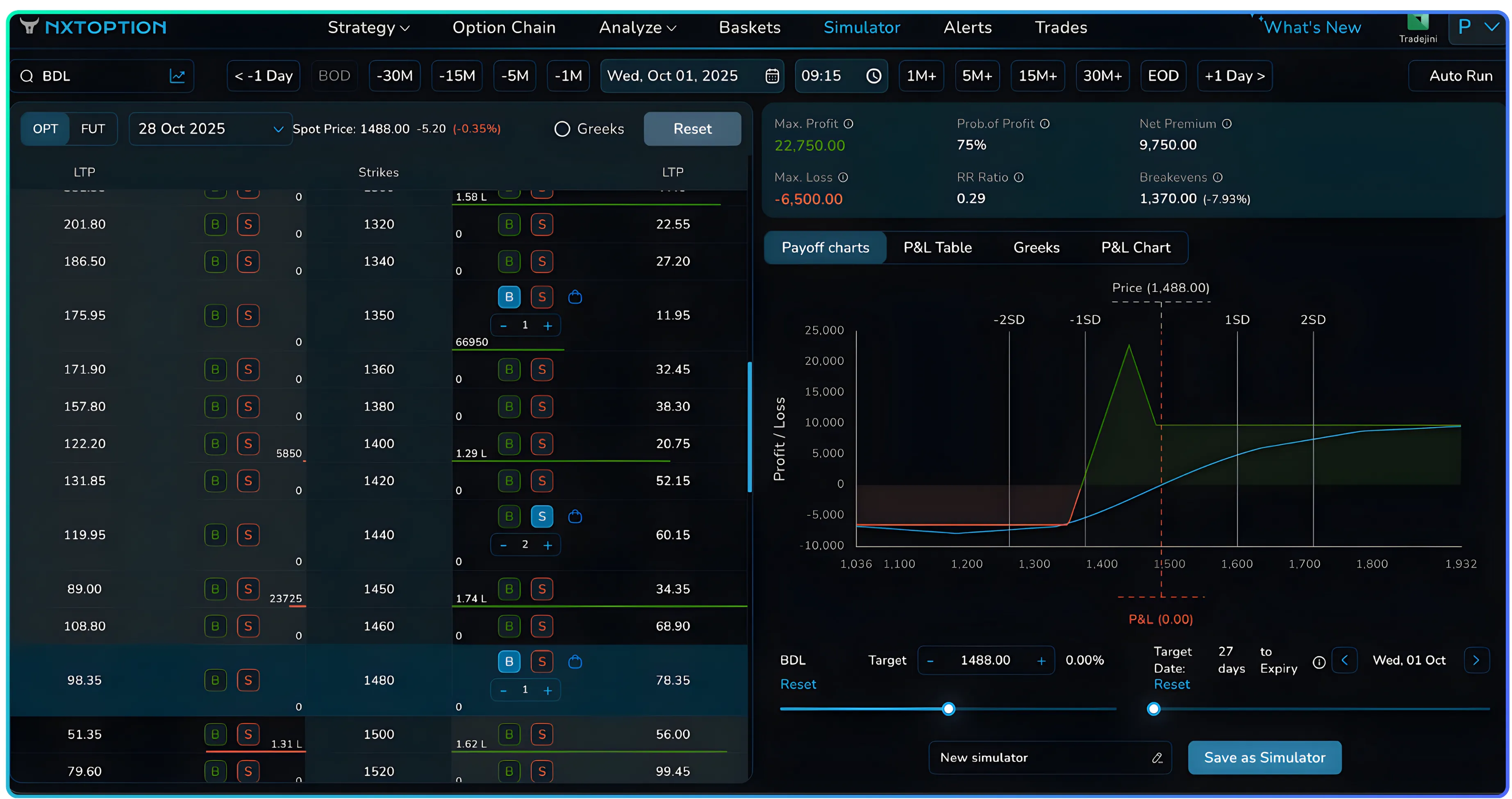 - Maximum Loss: ₹6,500.00 (if BDL drops sharply below ₹1,350 or rises beyond ₹1,540)