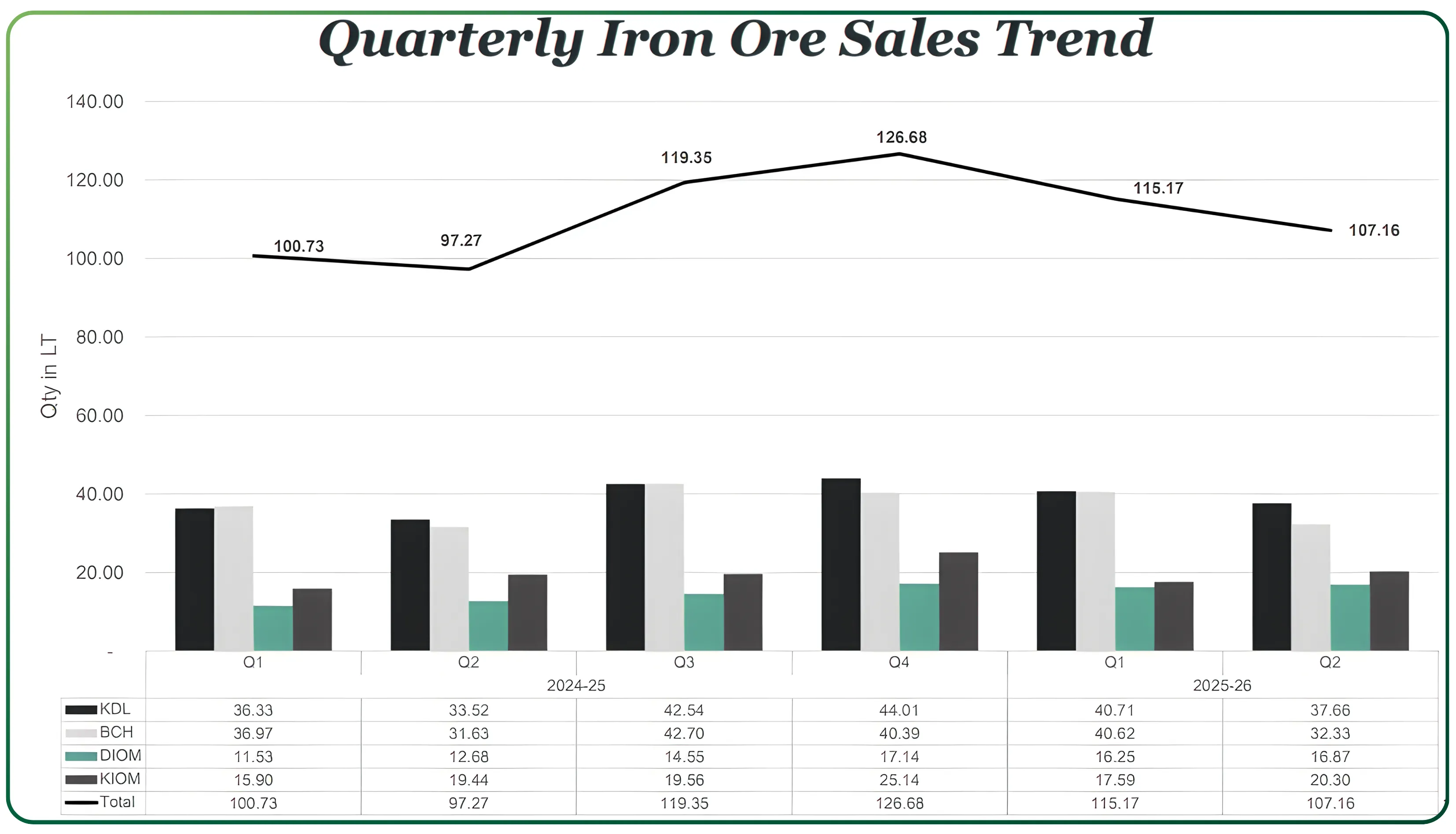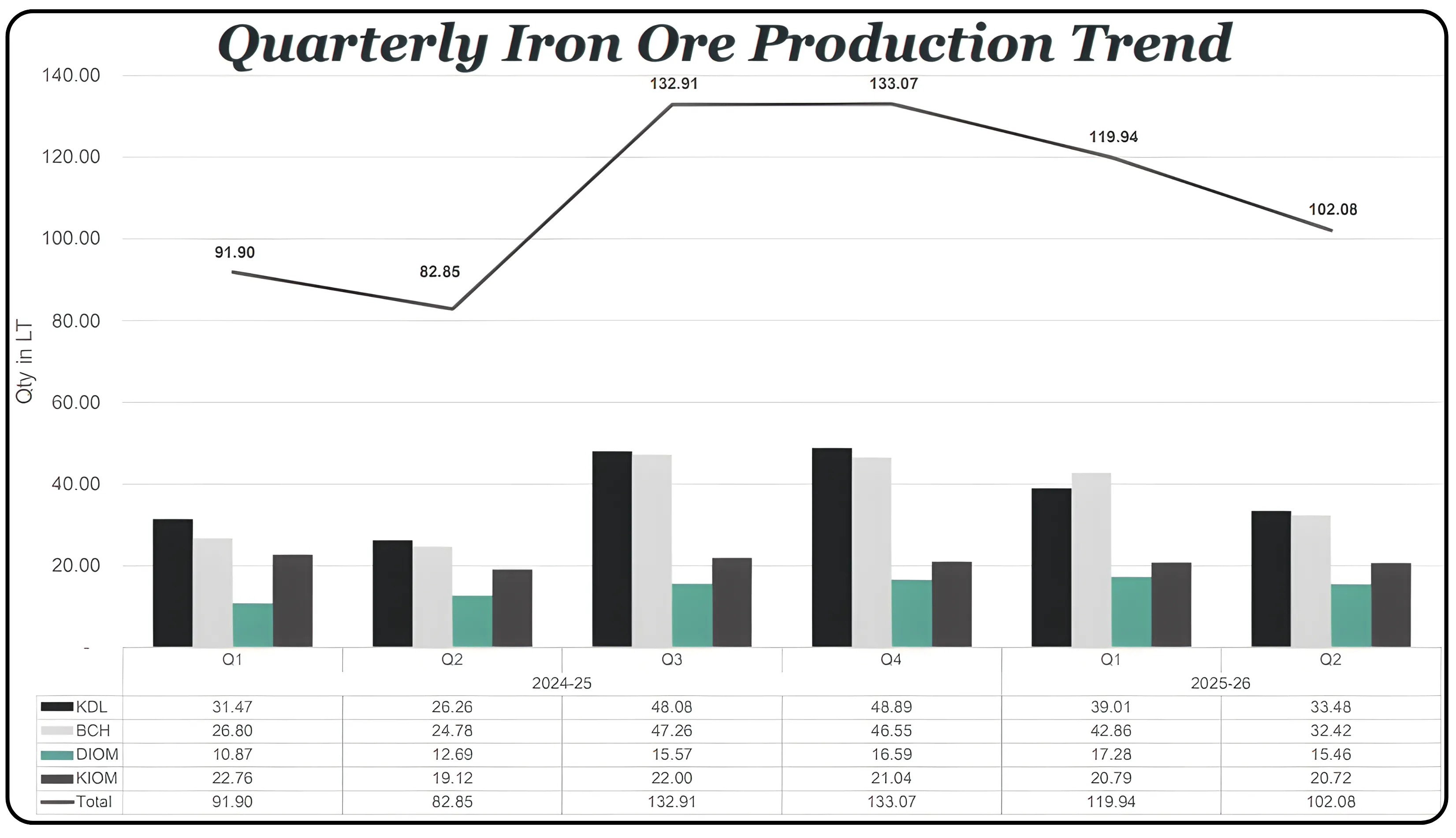 - YTD (up to October 2025): Cumulative iron ore production stands at 26.47 million tonnes (April–October 2025).