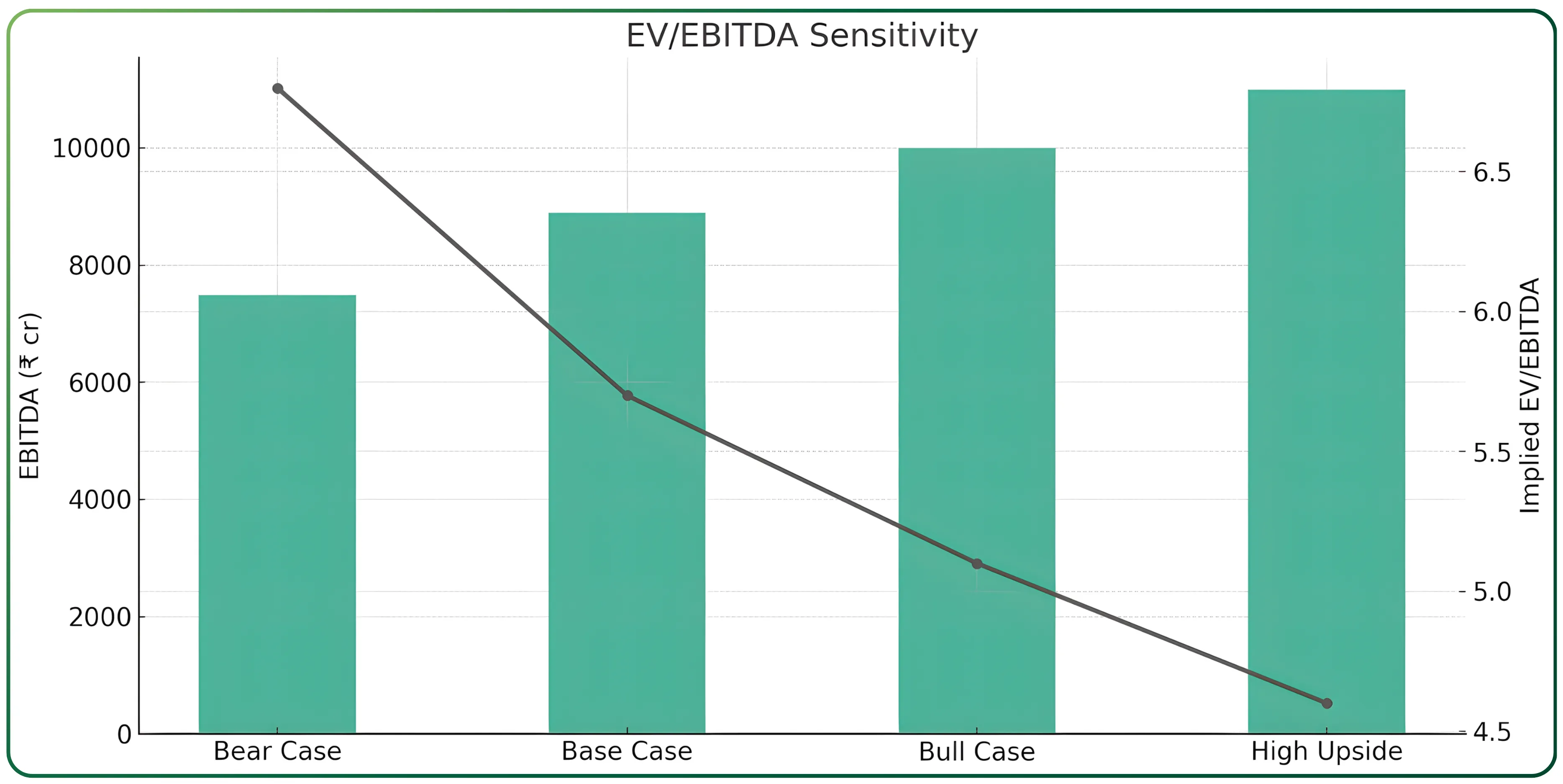 | Scenario | EBITDA (₹ cr) | Implied EV/EBITDA |