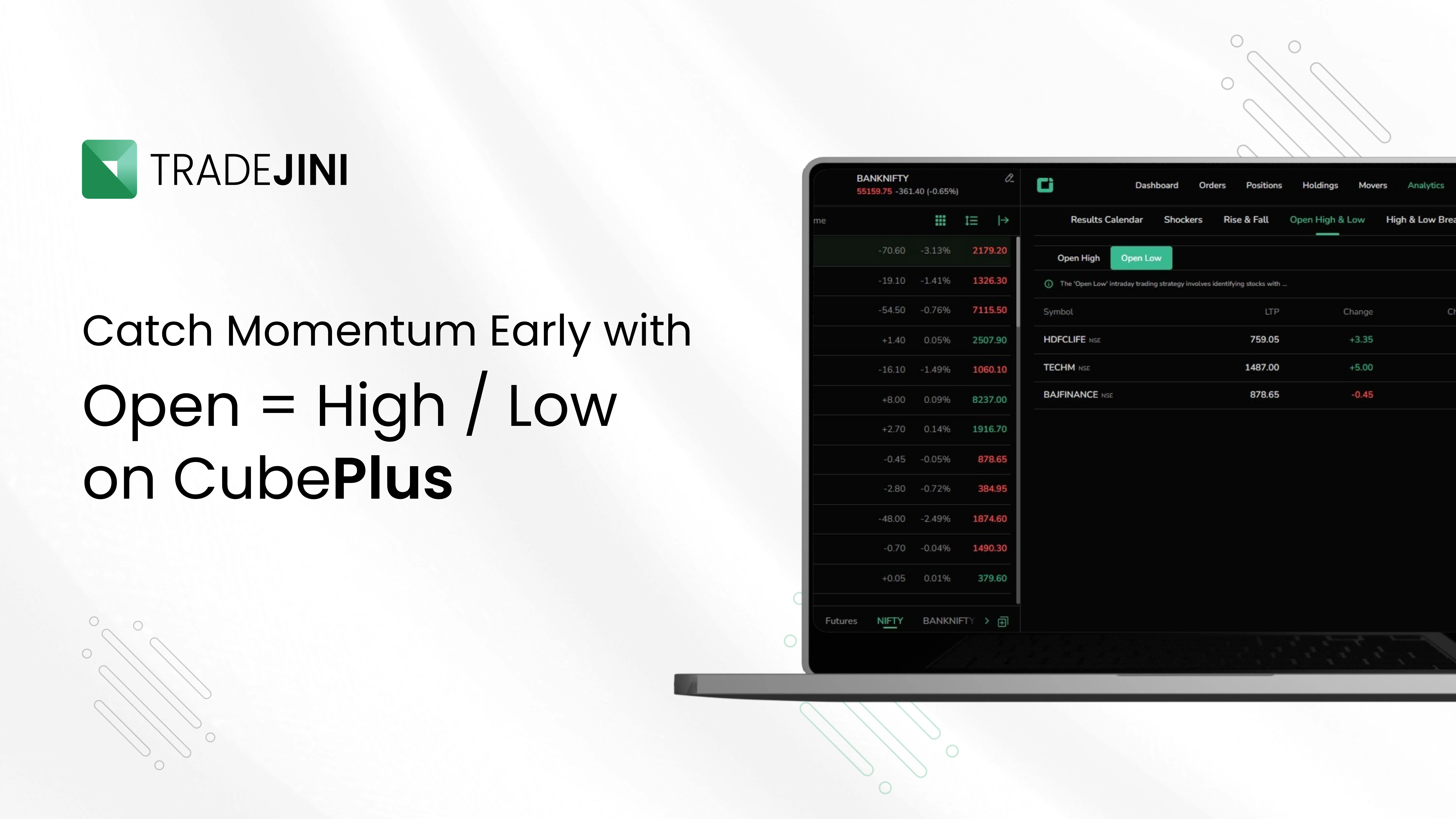 Explore Open = High and Open = Low Stocks with Ease on Tradejini CubePlus