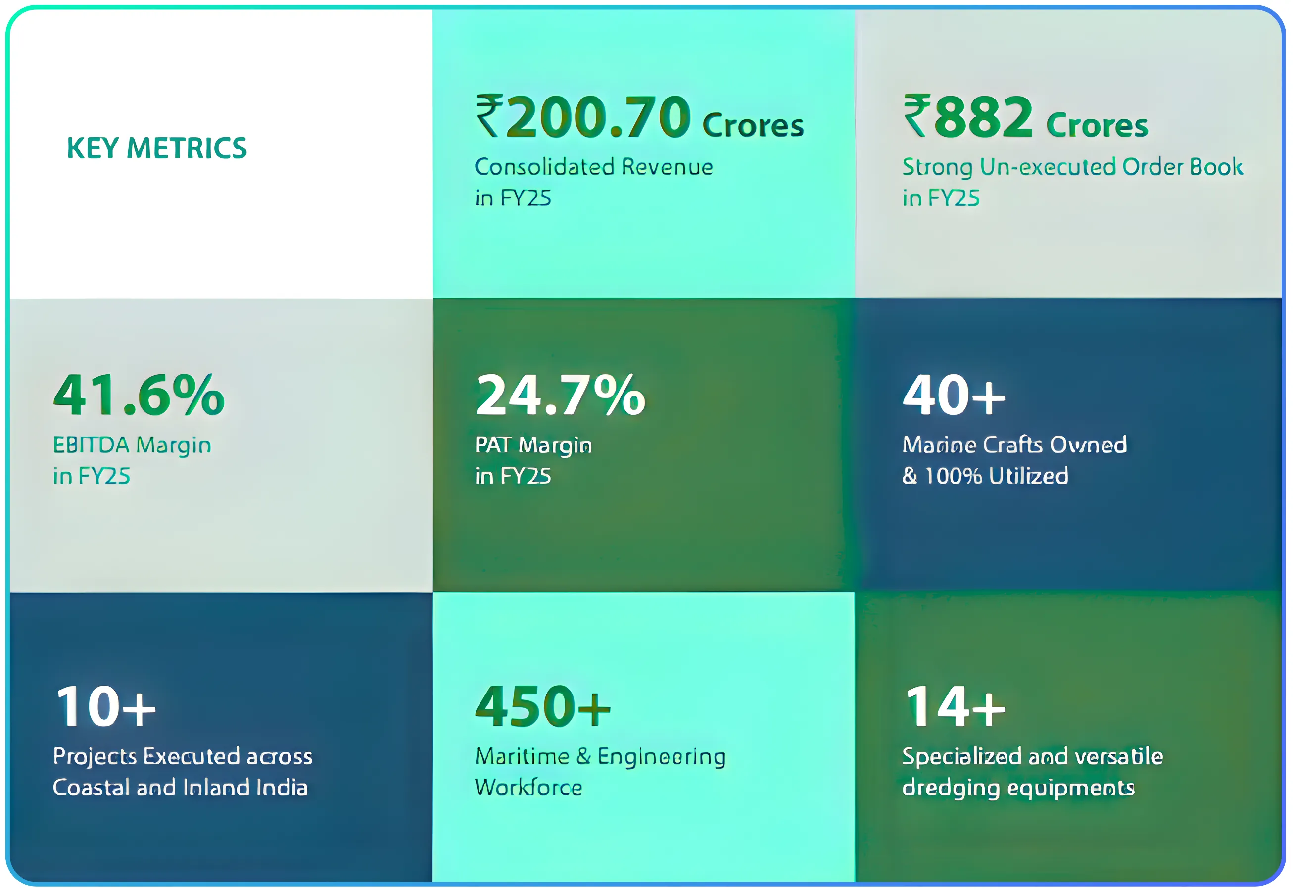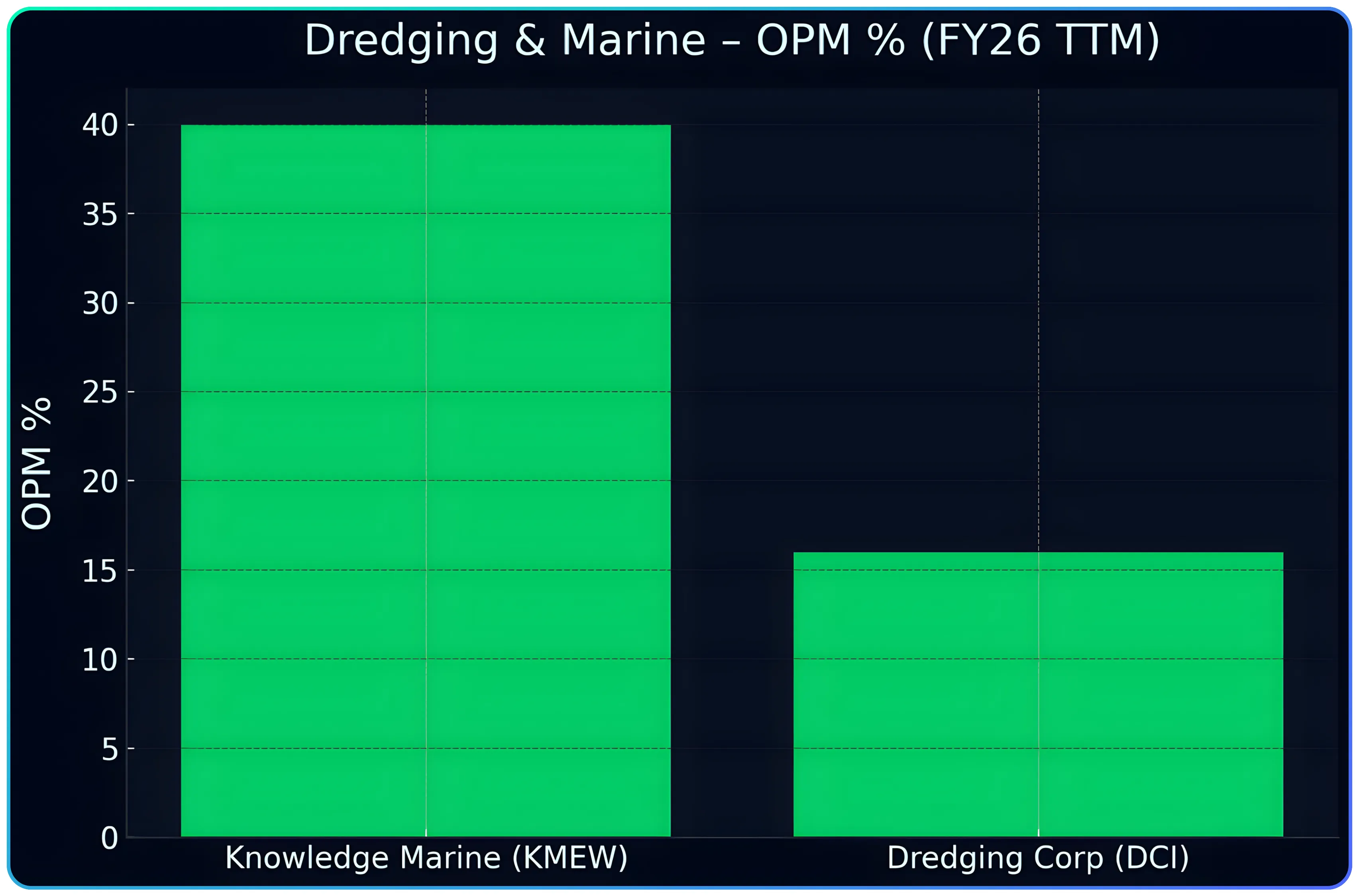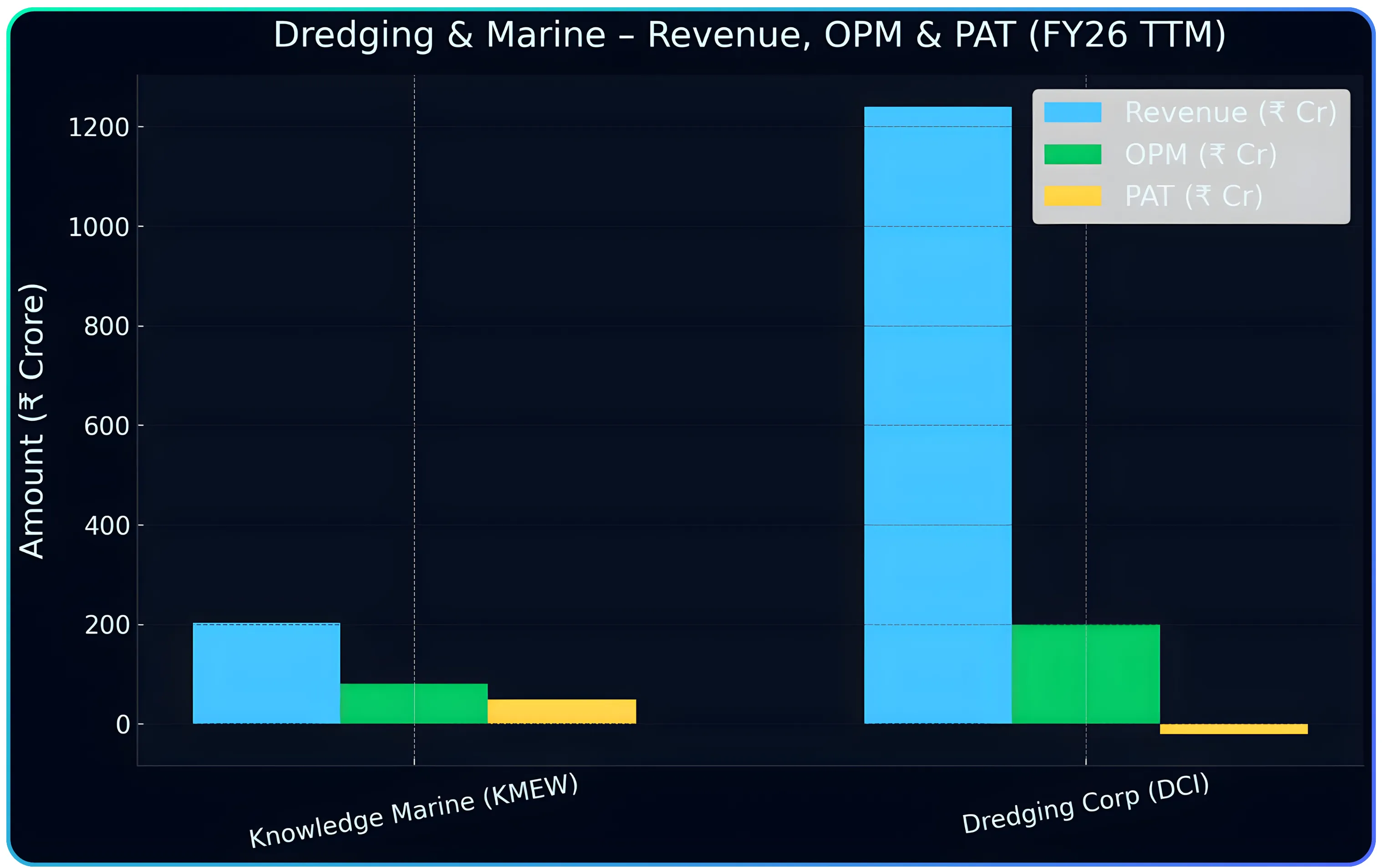 | Dredging Corporation of India (DCI) | 1,241 | 201 | 16% | -20 | — | Largest fleet; ageing assets |
