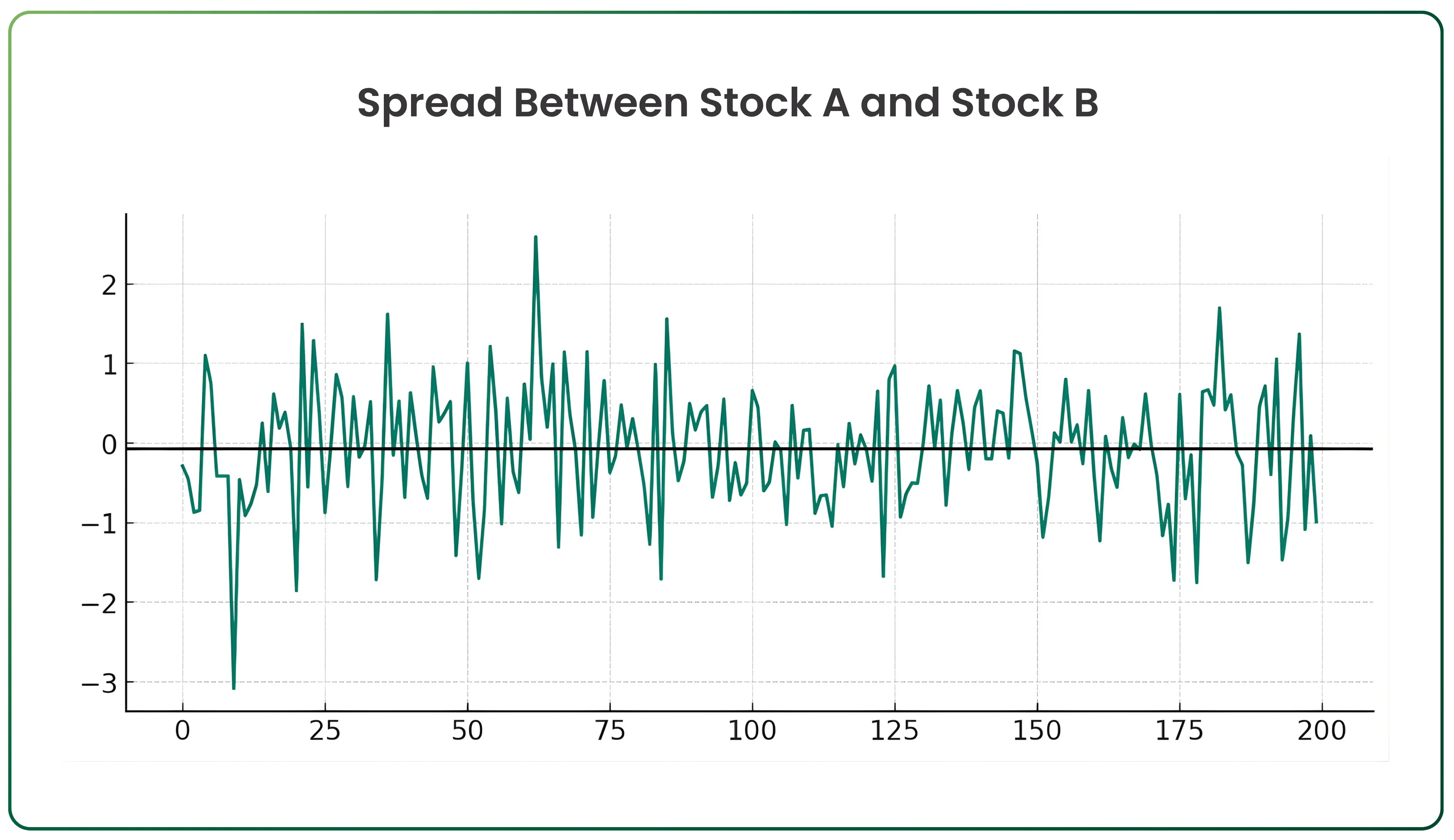 When the spread spikes far above or dips far below the black line, it signals that one stock is temporarily out of sync. That’s where traders often take positions.