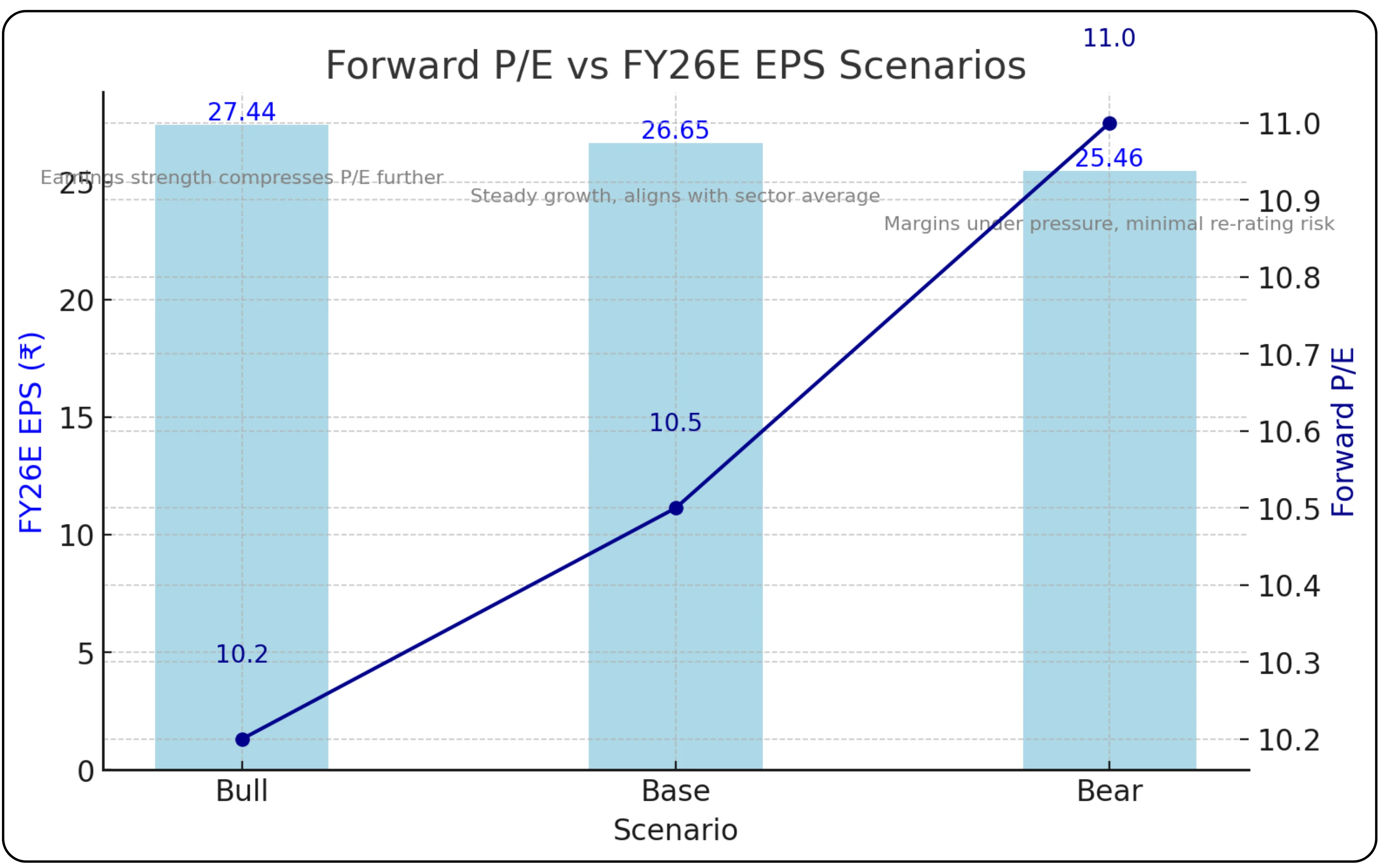 | Scenario | FY26E EPS (₹) | Forward P/E | Observation |
